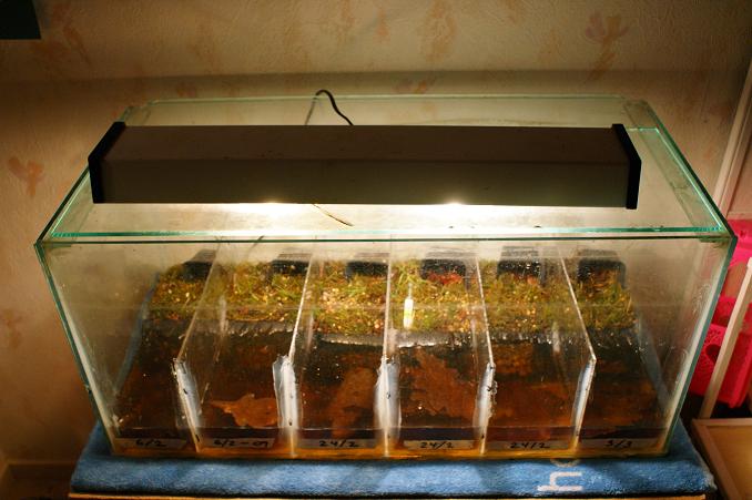Då har jag byggt om ett akvarium till yngel-> grodanläggning...: