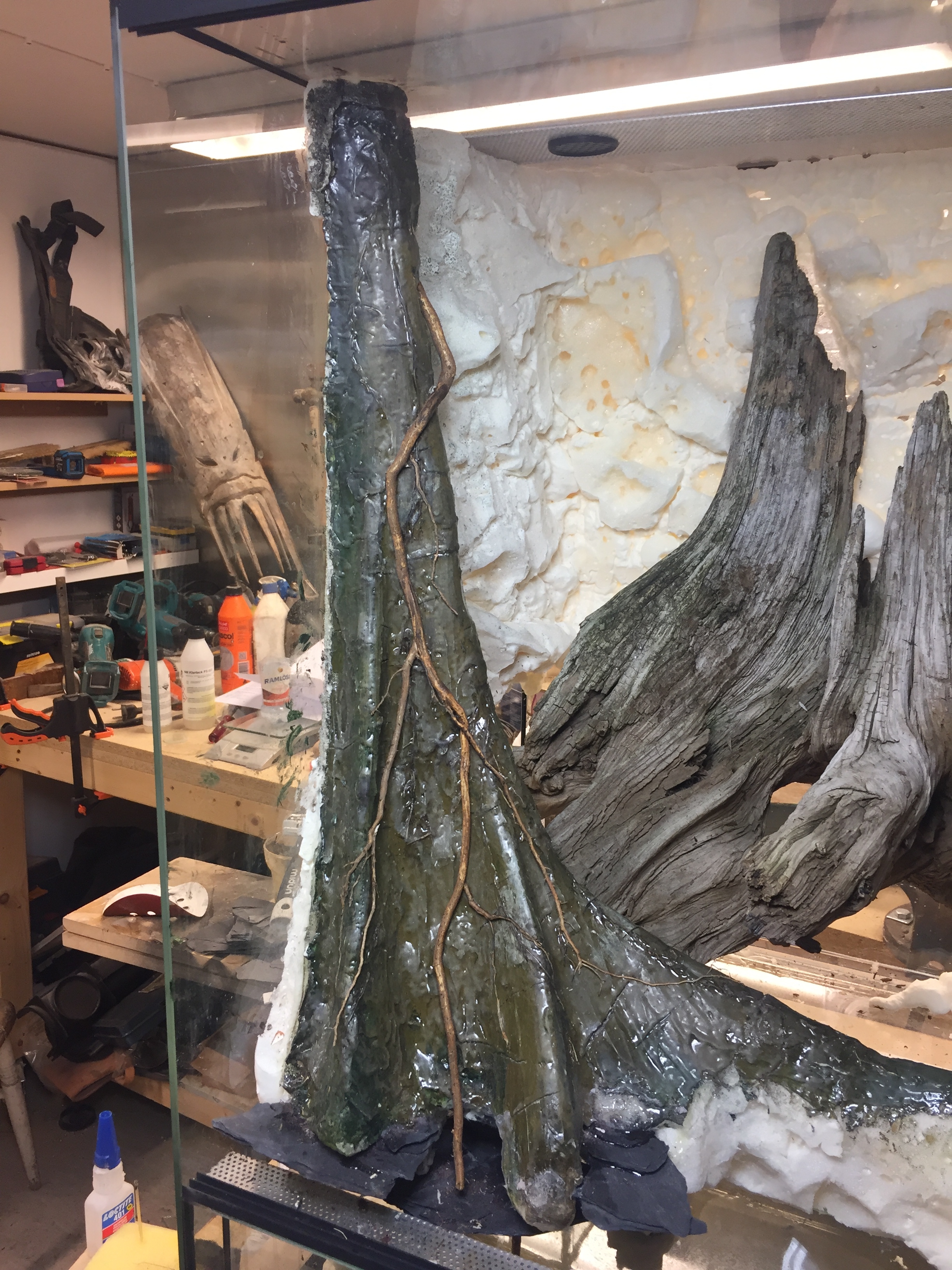 Blev inte lika nöjd med rötterna som förra gången, men jag orkar inte pilla med det mer, vill ju komma vidare med resten av terrariet! Kanske att jag fixar till den tjocka roten längst upp. Den går runt bakom, men det ser på ett lite onaturligt sätt ut som den kommer ut mitt på buttress roten.