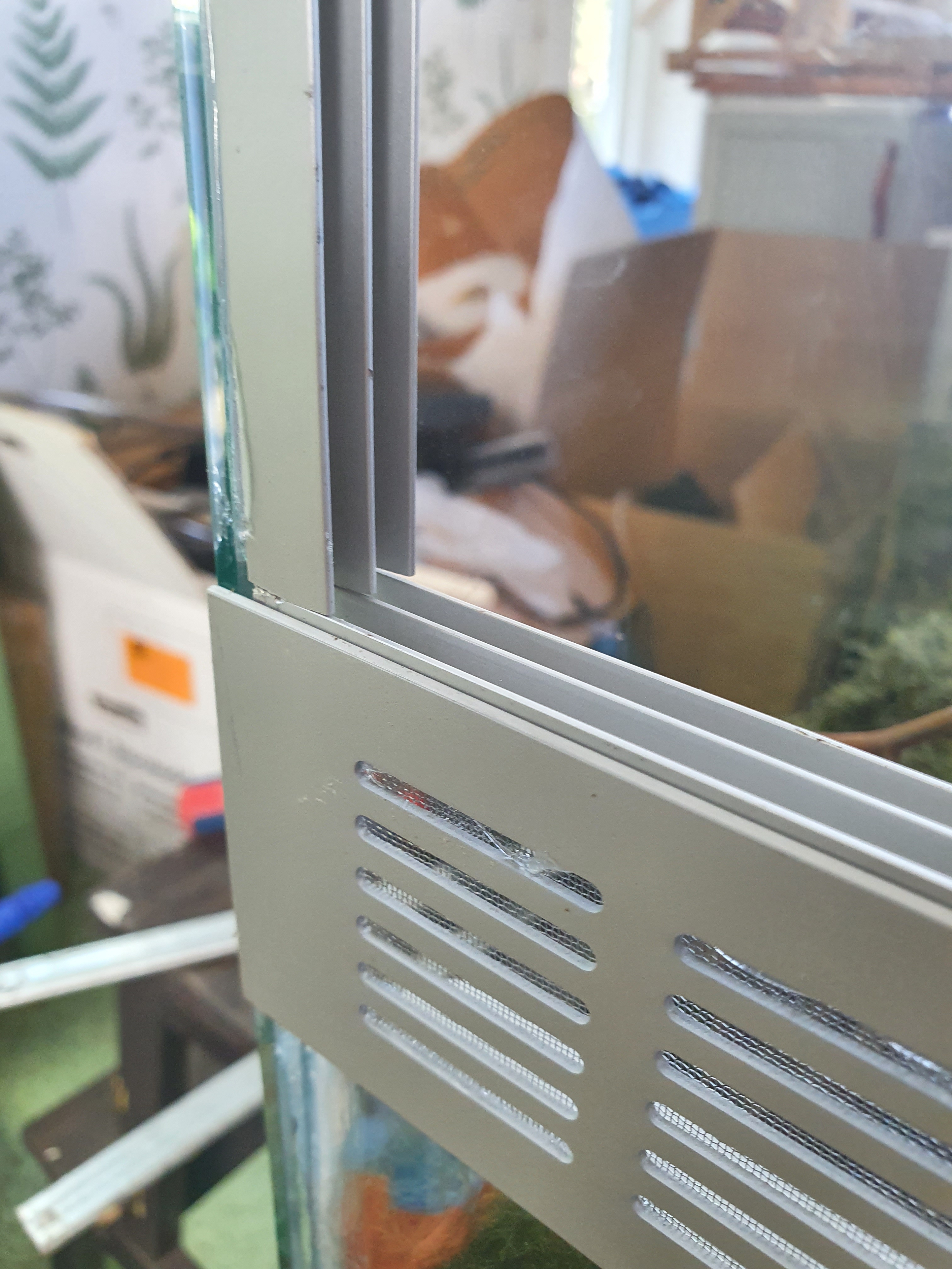 I väntan på skjutglasen (och ersättningen av det spruckna topp-glaset) blir det finlir. Jobbat med att sätta alu-lister för att både skydda glaskanterna men också för en estetisk look eftersom ventilationen är alu.