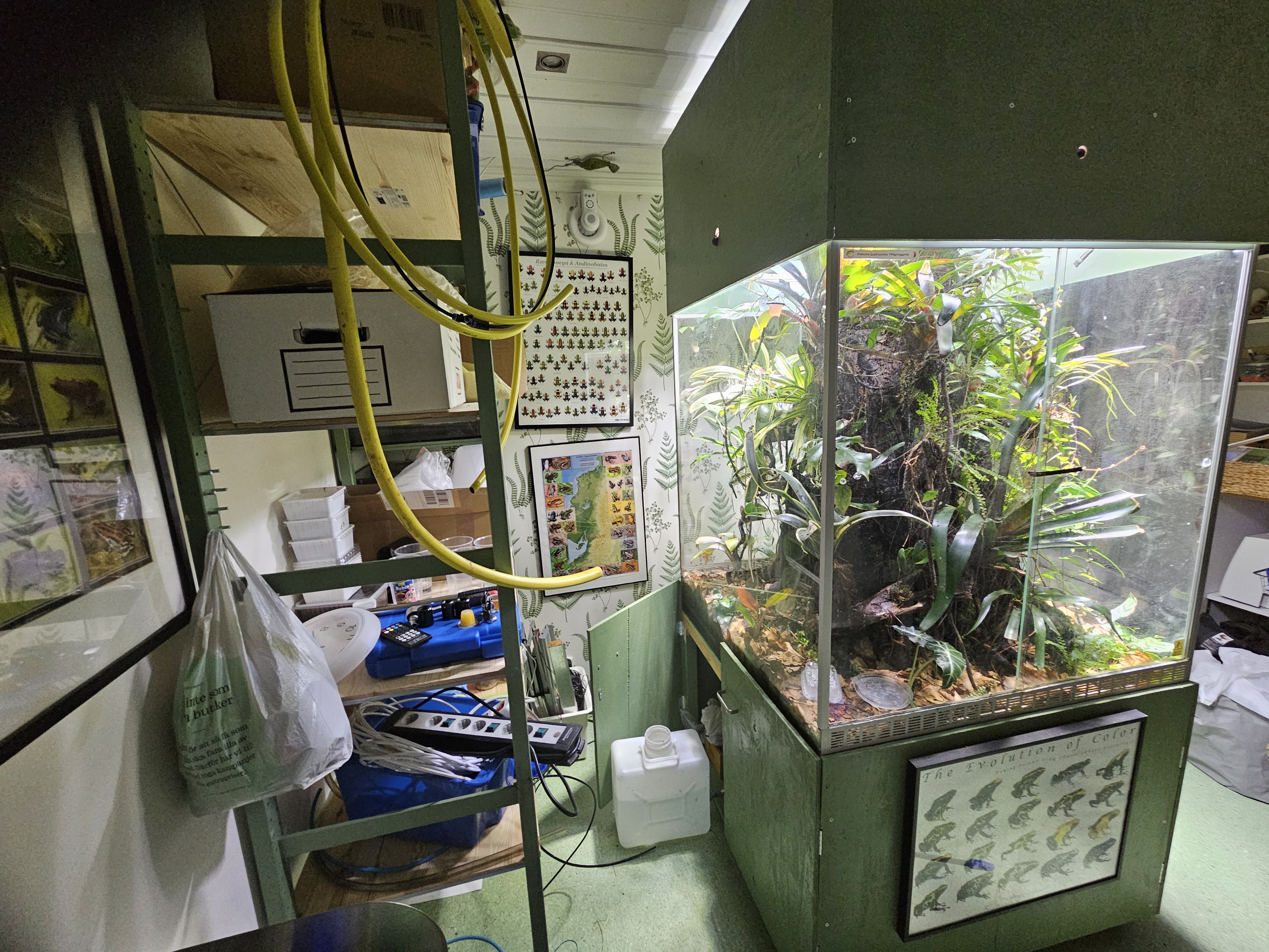 Monterat belysningen och regnsystemet samt fixat dropväggen. Planterat en första vända och släppt in mitt nya 1.1 par D T Tumucumaque och mitt 1.1 Påfågeldagdeckopar. Tänkte även ha någon Ranitomeya art (grupp) i burken då den är 1250 L.
