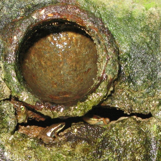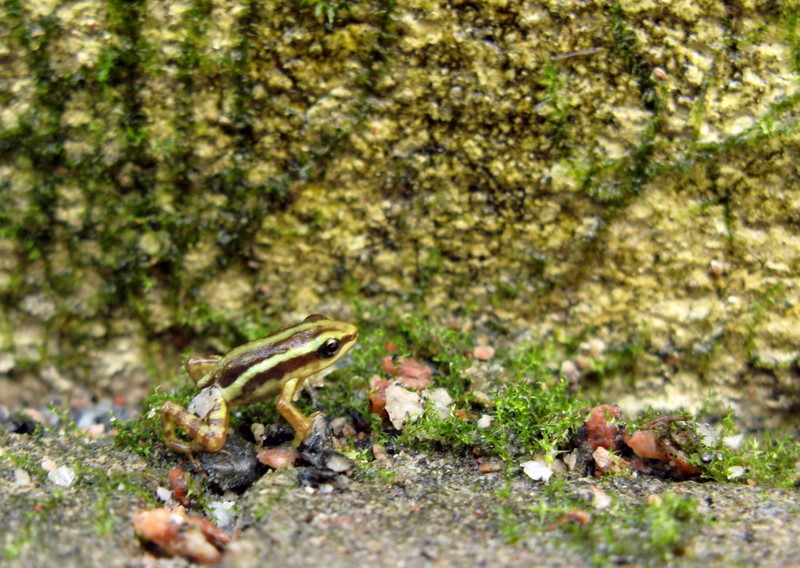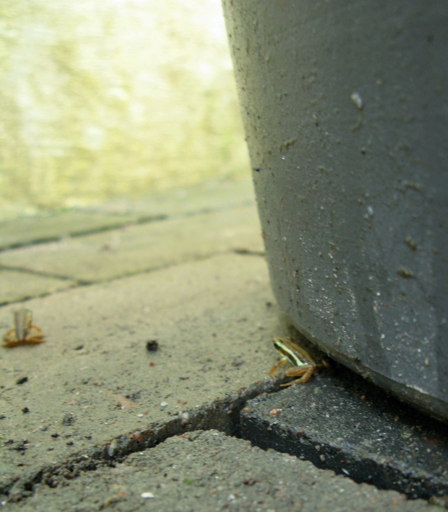 Totalt hittade jag ca 10 små grodor. Enligt min uppfattning inte fullvuxna. Kanske relativt nyuppstigna? Enligt en som jobbade i växthuset så hade dom räddat ganska många nymetamorferade grodor ur den stora bassängen i december när dom rensade den på växter. Alla grodor hittade jag i viktoriasalen.