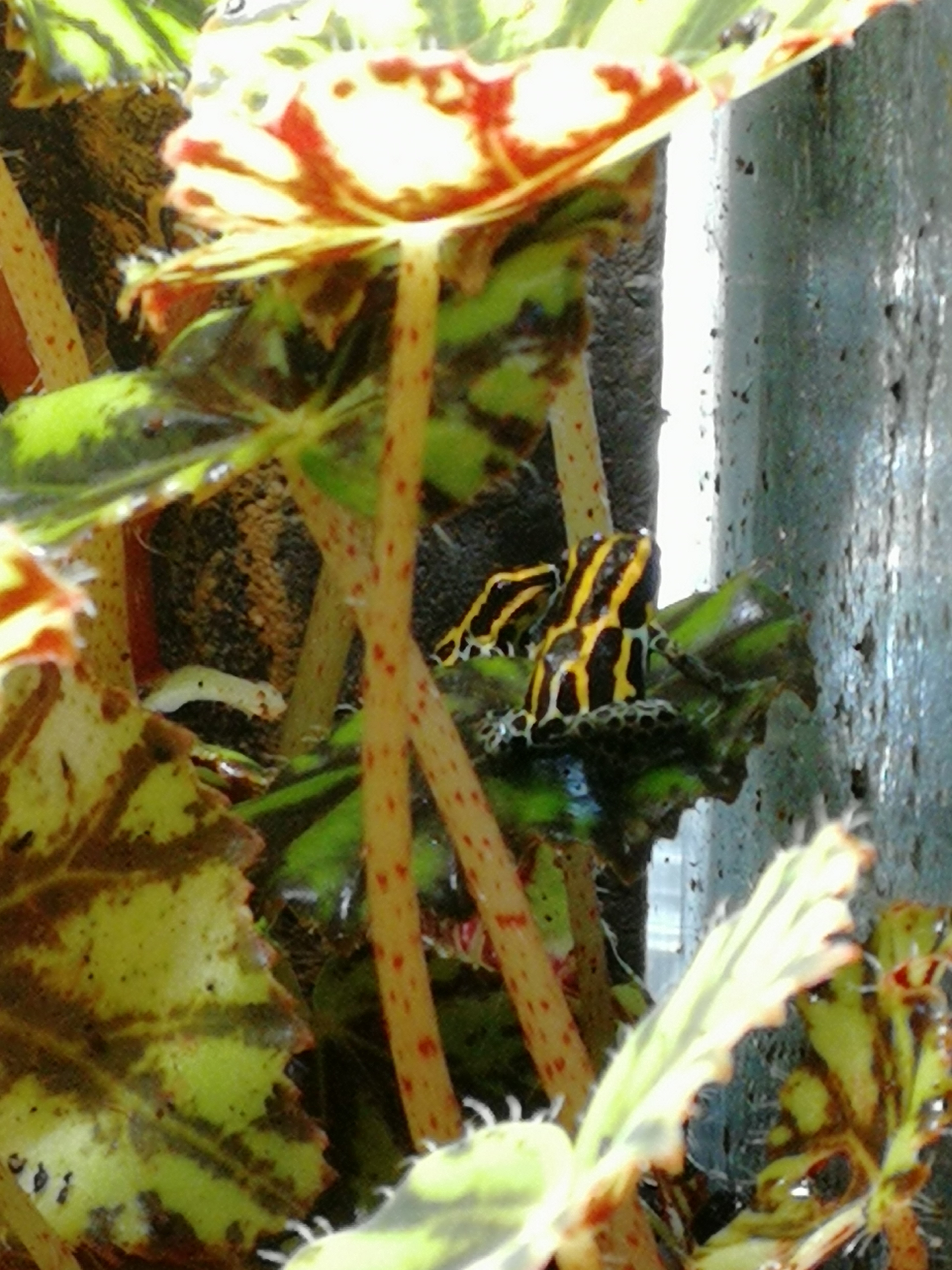 D.tinctorius Sipaliwini Green, nyss hemkommen och börjar vänja sig vid den konstiga matburk som dykt upp i terrariet (jag låter dem äta rent de gamla bladluskulturerna innan jag slänger dem.)