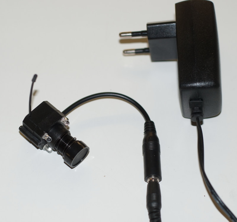 Kameran är idealisk för dig som vill ha en dold kamera, eftersom den är så enormt liten. Den drivs med den medföljande AC-adaptern men kan även anslutas till ett vanligt litet 9V batteri. Detta ger kamera helt nya möjligheter eftersom den då inte ens behöver vara i närheten av ett vägguttag.