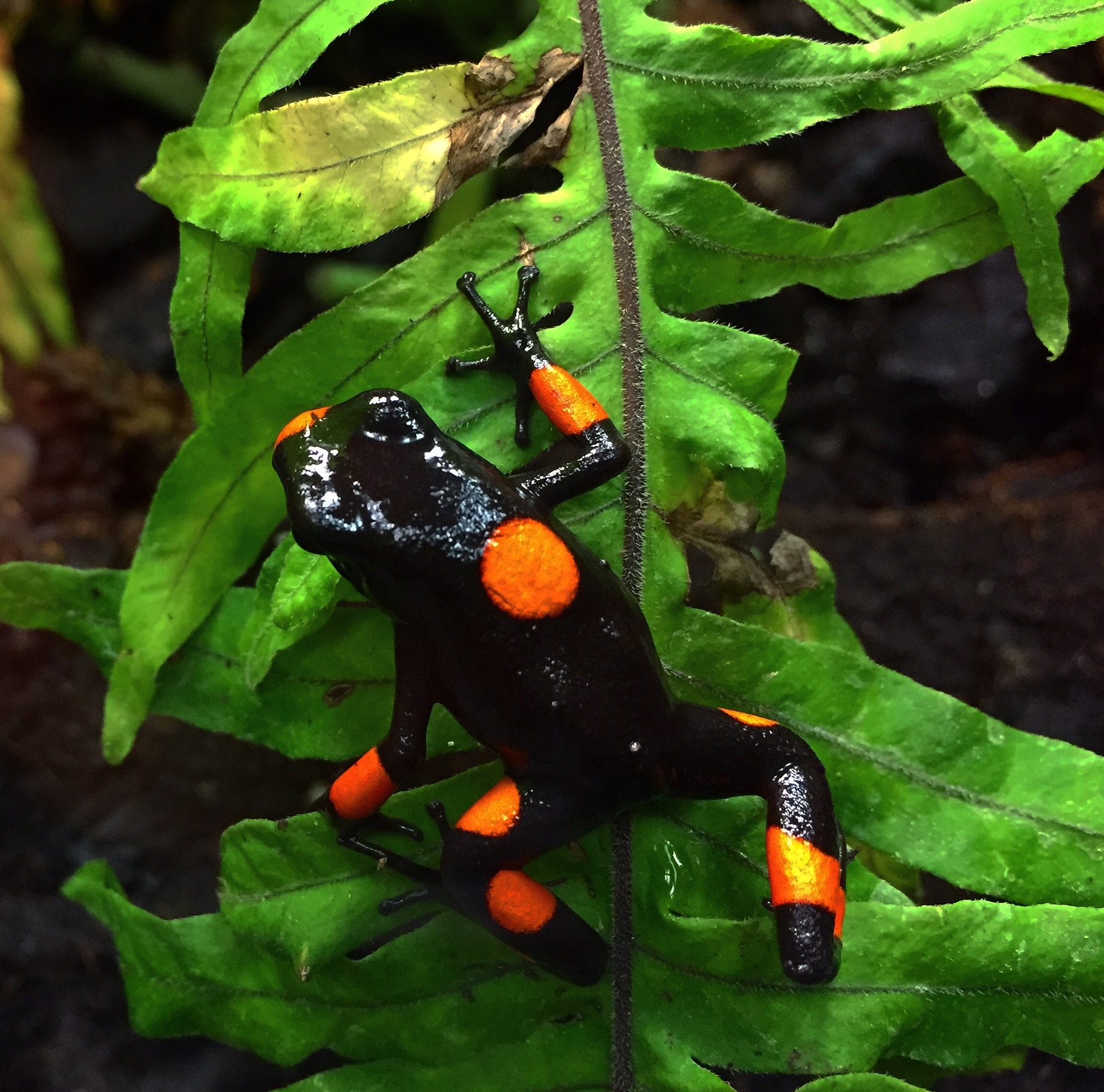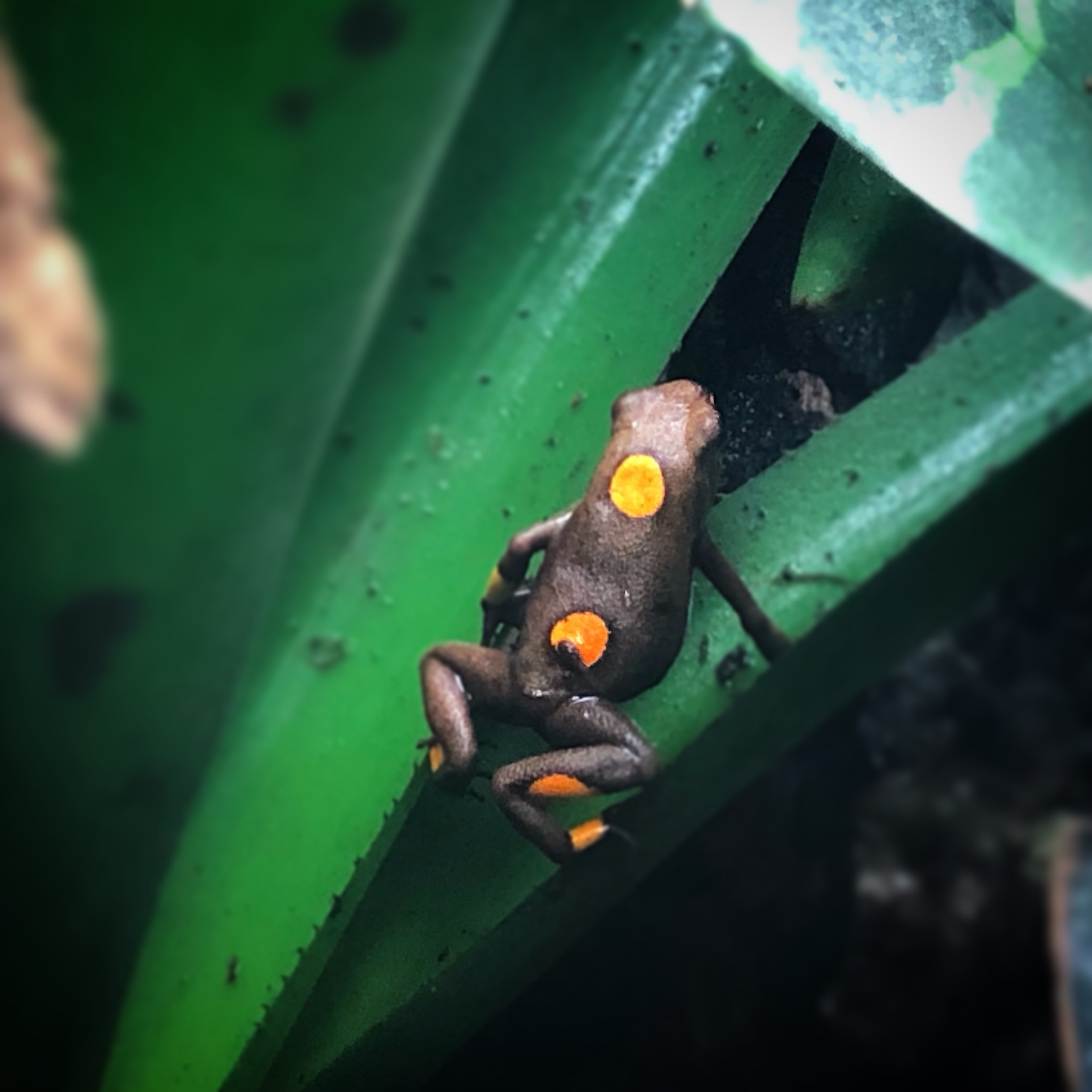 Namntillägg:Denna variant brukar kallas Oophaga histrionica Bullseye pga den markanta stora punkten många individer brukar visa på ryggen eller, efter lokaliteten, Oophaga histrionica Tatamá.