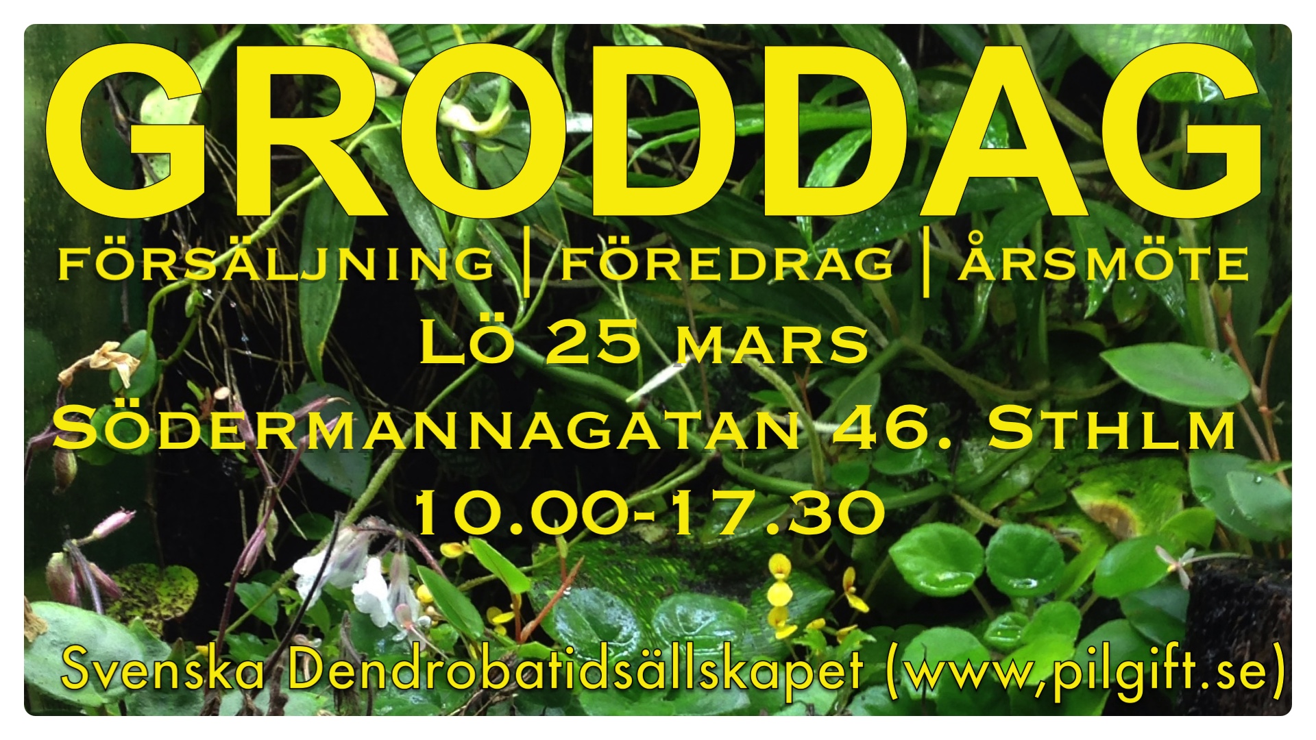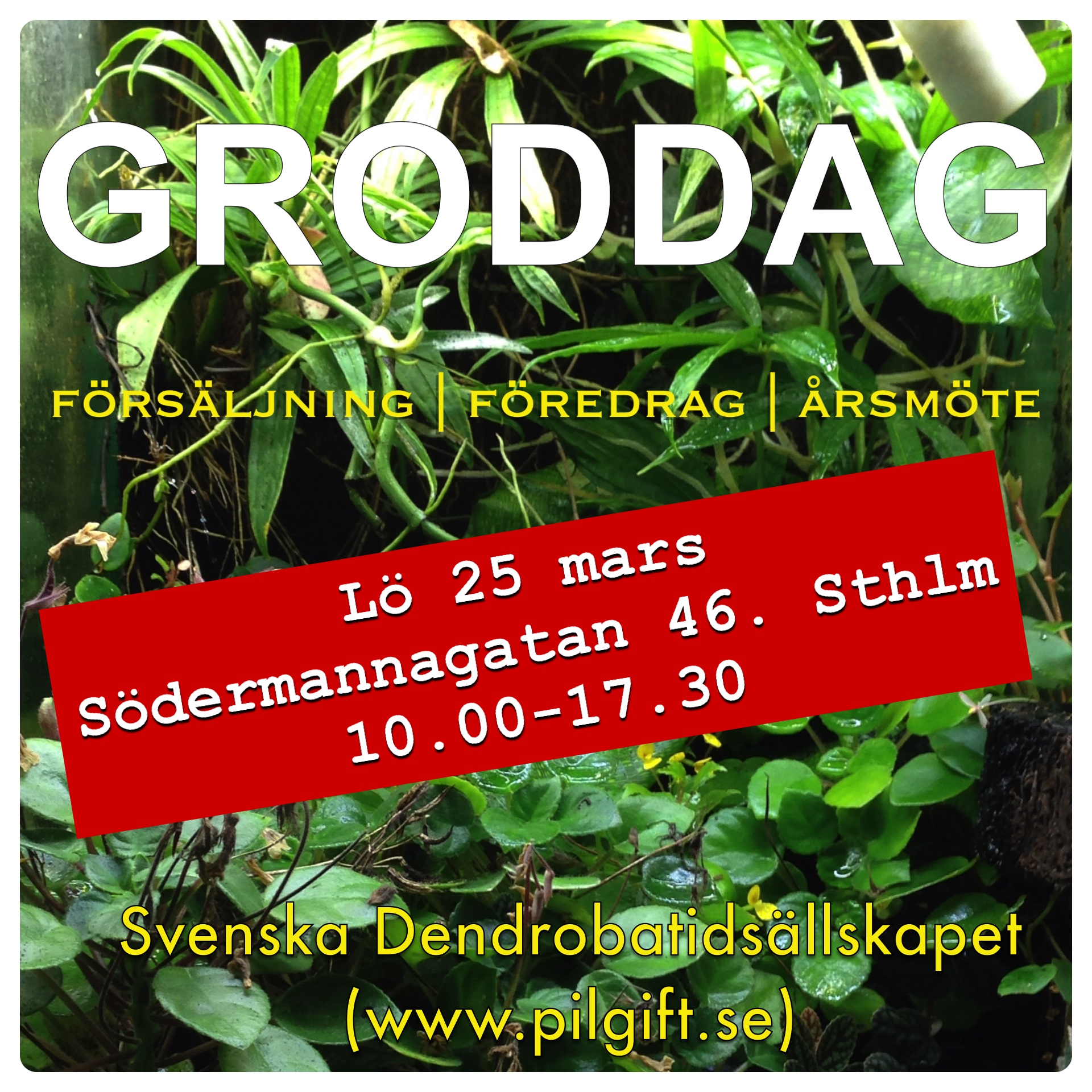 Nu är det dags att planera in vårens groddag/årsmöte. Detta går av stapeln den 25:e mars. Vi hyr ännu en gång lokal av Frälsningsarmén Kår 393. Adressen dit är Södermannagatan 46 på Södermalm.