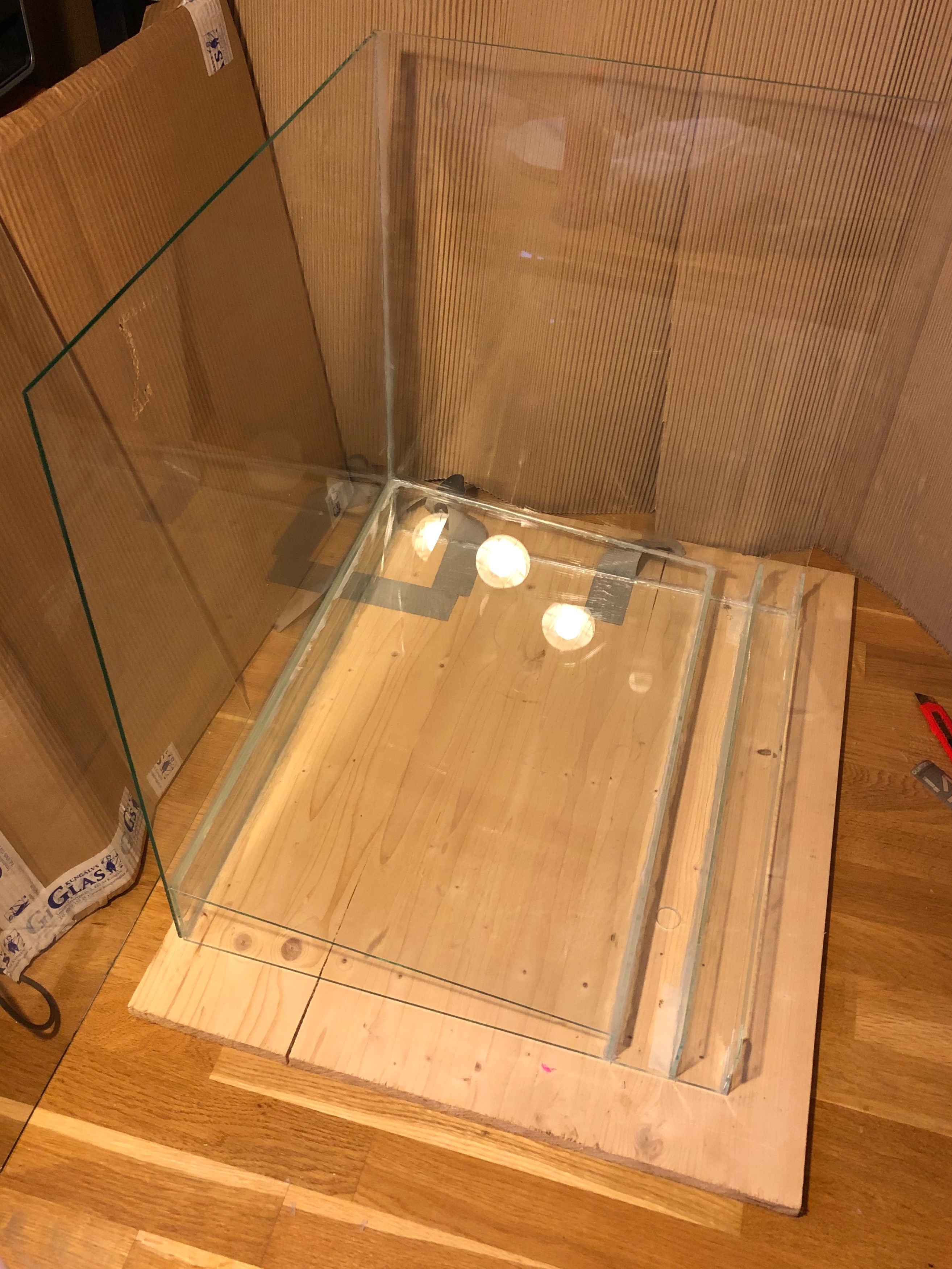 Har silikonat massa aliminiumakvarium, detta är första gången med helglas så vi får se.