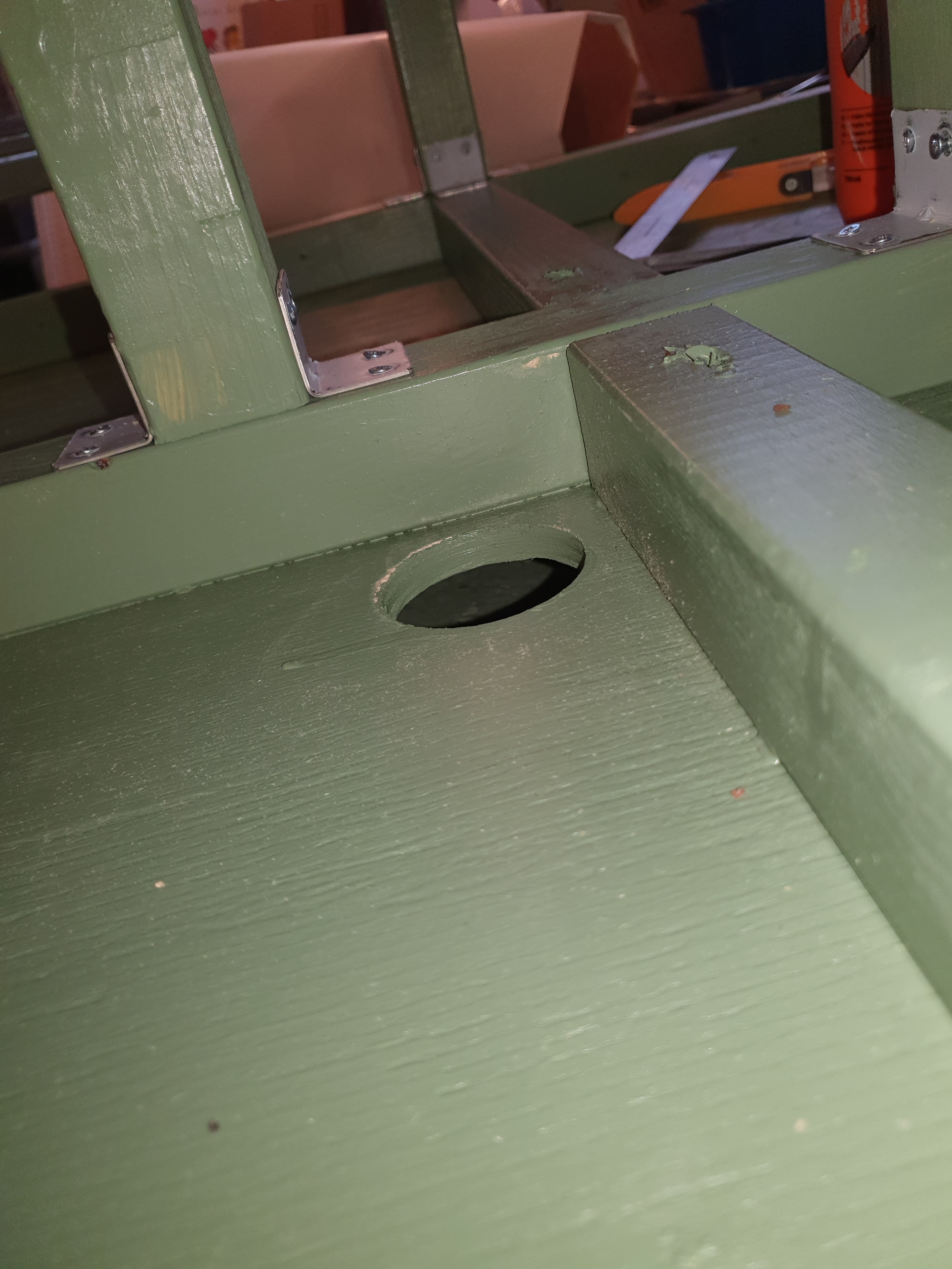 Och sedan ett 10cm hål som går upp till den 12x12cm glaspelare i mitten av burken som jag kommer använda till att bygga trädet kring och som jag använder som kulvert för slangar och kablar upp till toppen på burken.