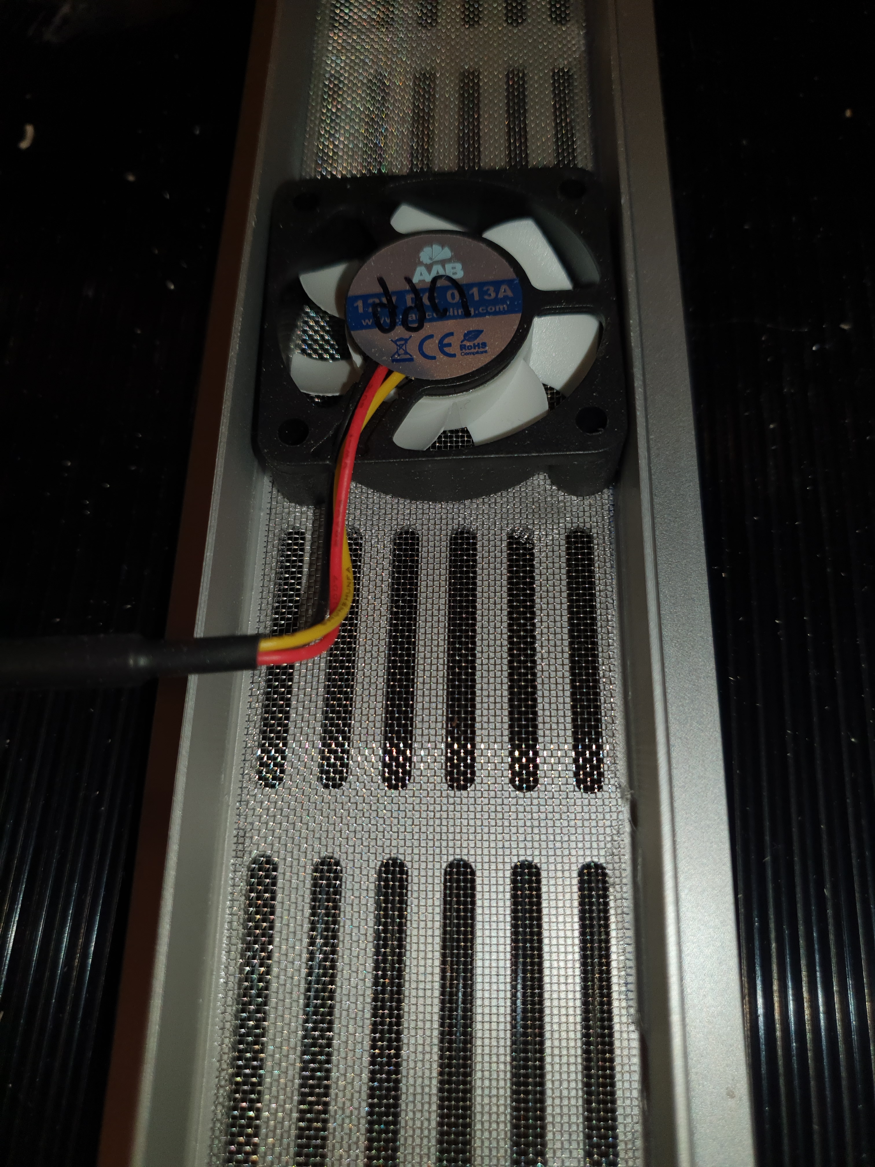 Eftersom jag kommer ha skjutglas på två sidor ville jag har lite stabilitet även i ventilationen i burkens nedre framkant. Jag har således köpt 1m alu-ventilation som oftast används till kylar/frysar och sedan har jag silikonat flugsäkert nät på insidan. Blir både estetiskt och stabilt. Jag har samma alu-ventilation i toppen med skillnaden att jag där skurit bort lite mer alu för att få plats med 4st små (40mm) fläktar. Naturligtvis flug/grod säkrade med flugsäkert när även dem. Har sedan också köpt en styrning (se bilden ovan) till fläktarna så med den tillsammans med timer borde jag kunna ställa in så att det blir cirkulation och rätt fuktighet. Det är tanken i alla fall. Har börjat med eldragning och så har jag köpt all belysning men det blir nog en uppdatering här senare i veckan. Jag har också ritningar på alla glas jag beställt vilket också kan ge inspiration och en större förståelse hur jag tänkt att alla ska hänga ihop