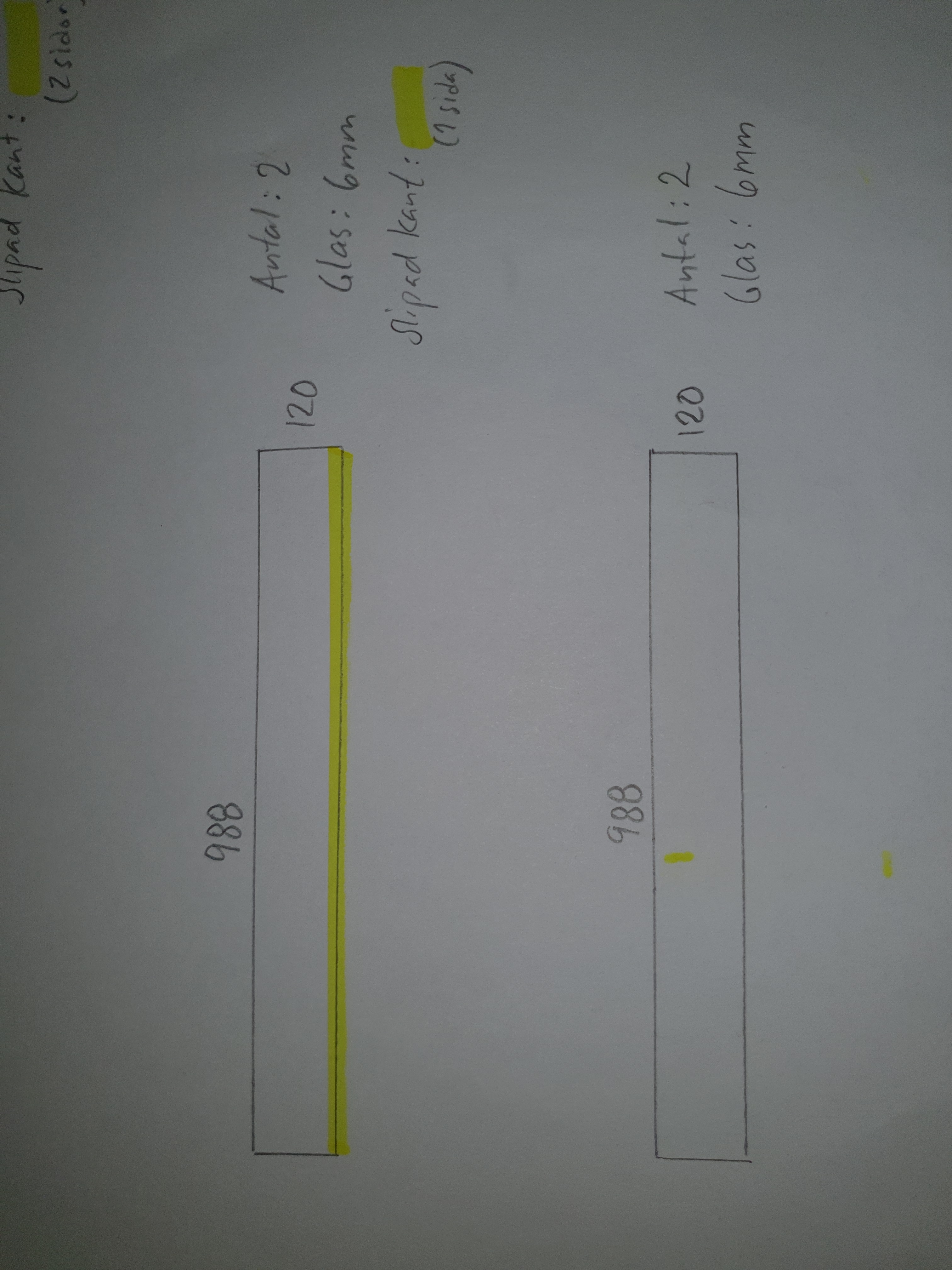 Sedan har vi två av sidorna i 6mm Float som INTE kommer ha skjutdörrar utan vara helt vanliga sidor. Dessa kommer ha polerade kanter.