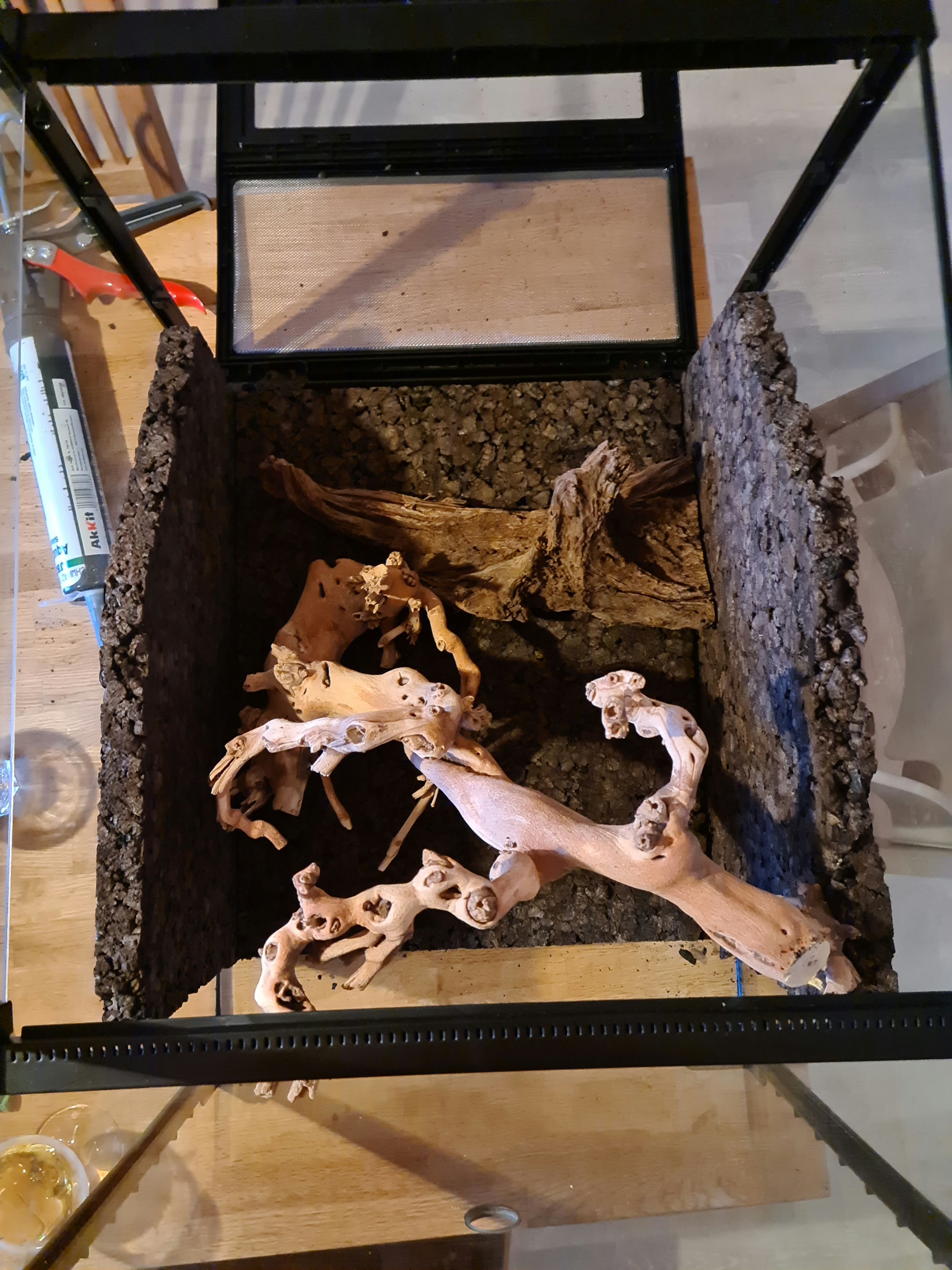 Det kommer bli ett exo terra 45x45x60. När terrariet är monterar och inkört, planerar jag att en grupp r. Variabilis eller r. Amazonica ska bo där.